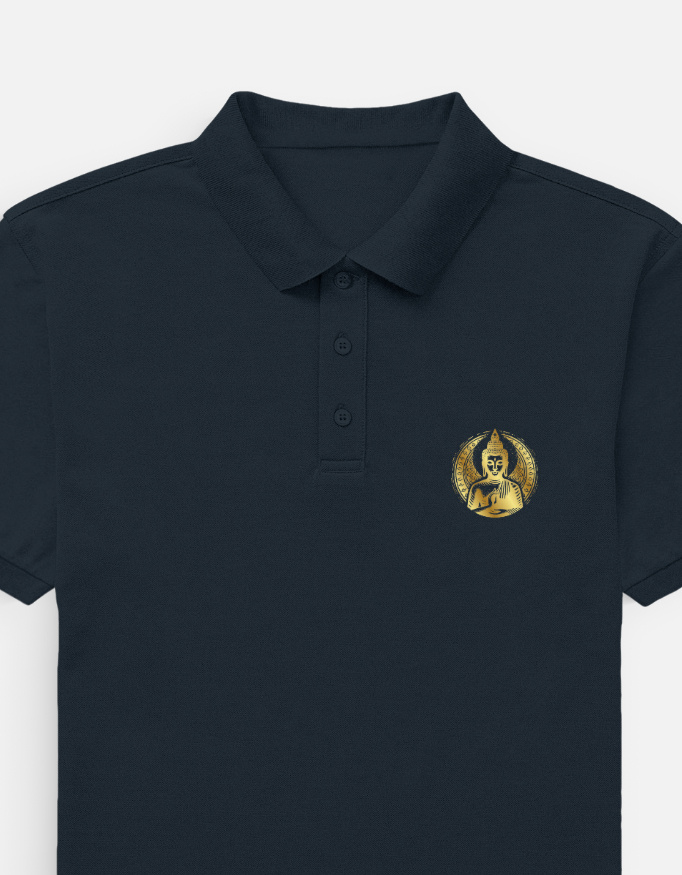 • Design: The front of the polo t-shirt boasts a captivating image of Golden Budha, making it a standout piece in your wardrobe.
